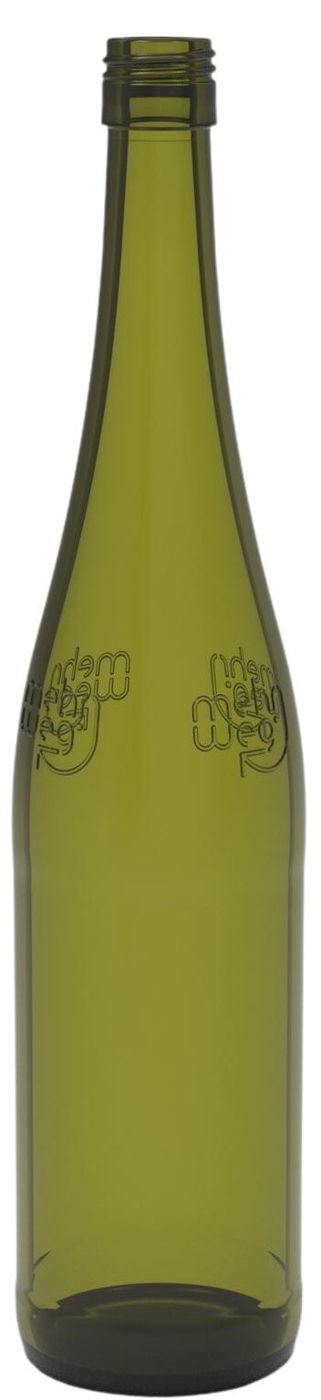 Im Rahmen des Projekts wurden zwei olivgrüne 0,75-Liter-Mehrwegflaschen entwickelt – in den gängigen Rheinwein- und Bordeaux-Formen. Eine Burgunderflasche ist derzeit nicht geplant, da der Absatz in diesem Segment aktuell noch zu gering ist.