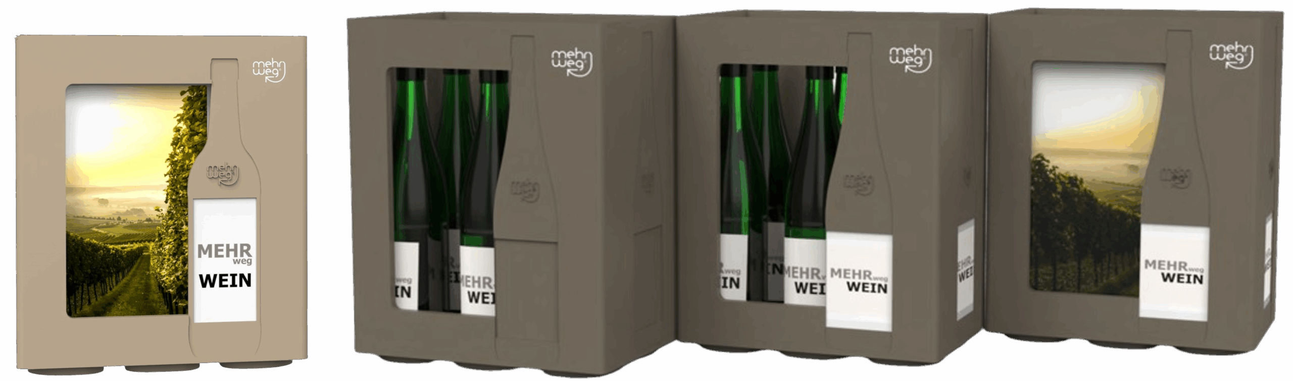 In der Weinbranche dominieren derzeit Kartons und Gitterboxen als Transportgebinde. Beide sind für die Retourlogistik Im Mehrwegsystem nicht geeignet, da sie zum einen schlecht lager- und transportfähig sind und zum anderen Flaschenwände und -mündung unzureichend vor Beschädigung schützen